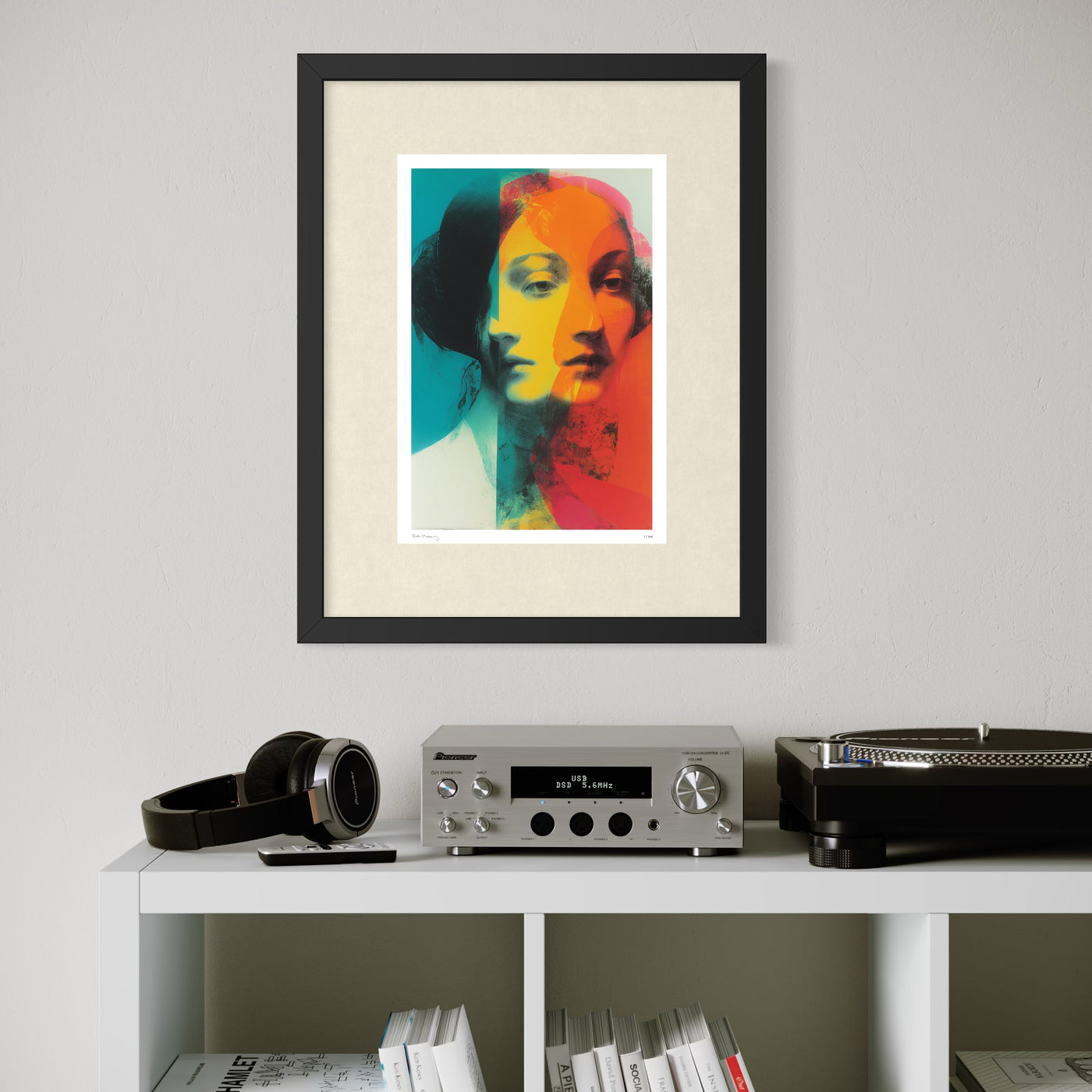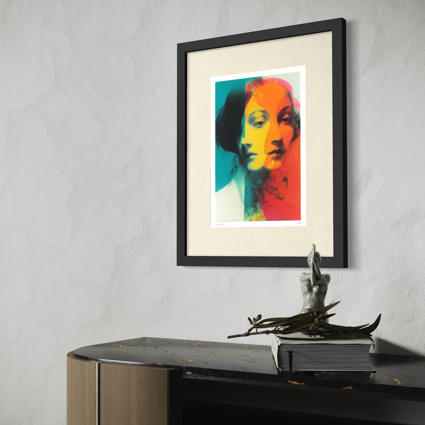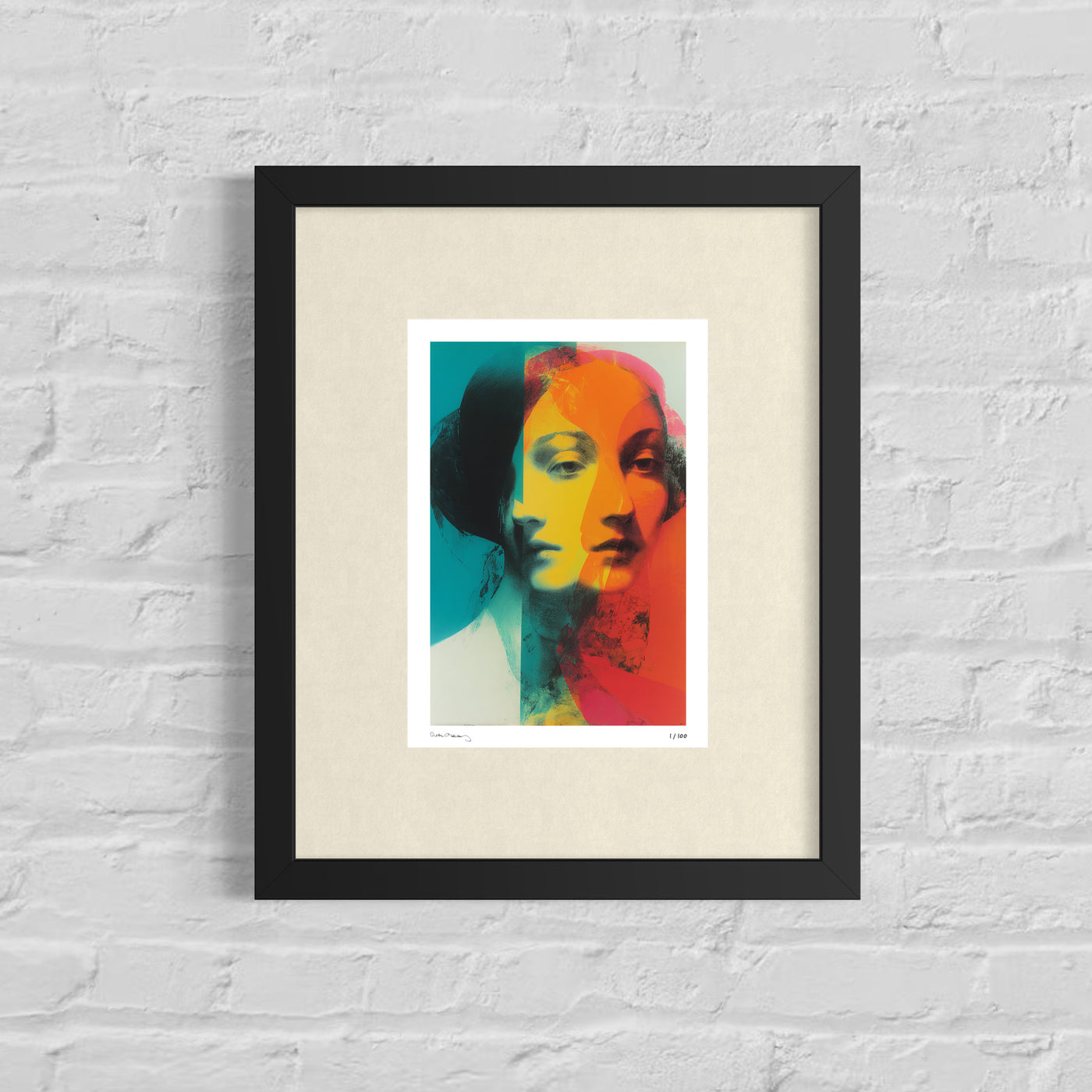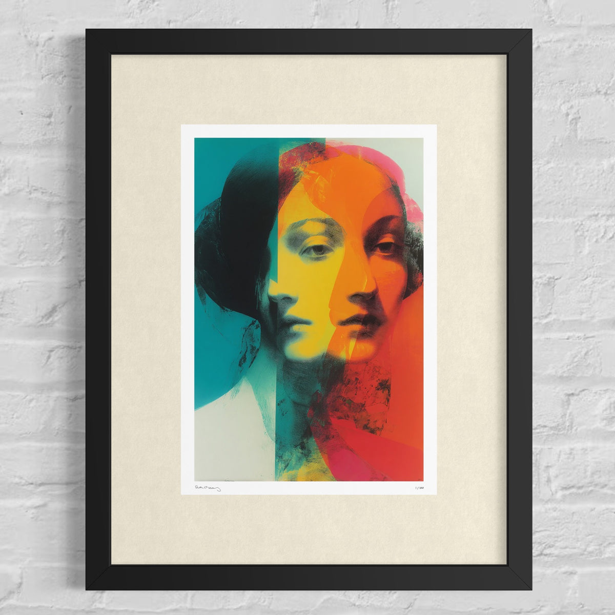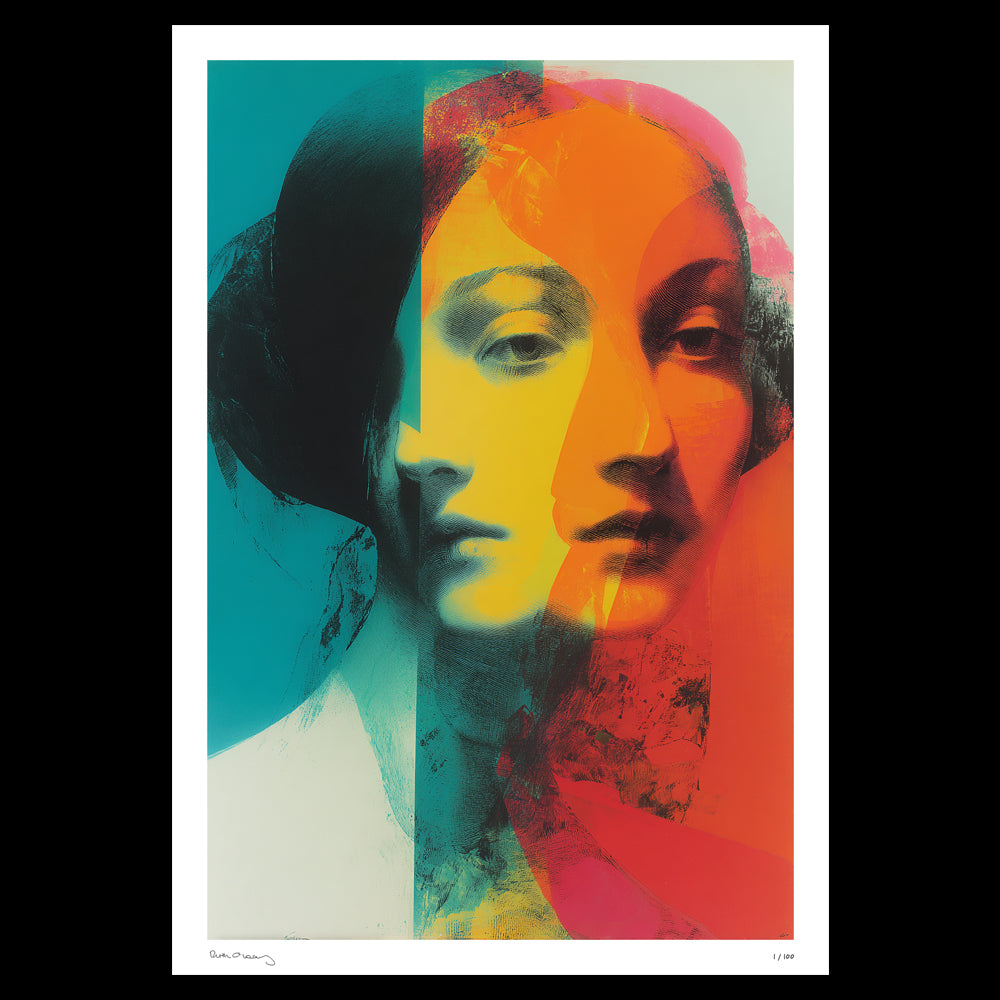 A study in chromatic poise and layered identity, this piece merges colour into a luminous, surreal portrait that invites slow looking.
