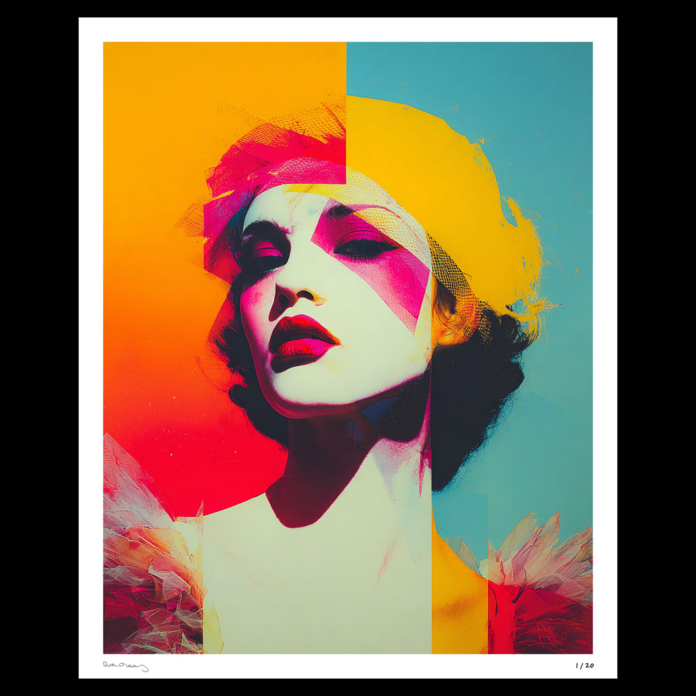 A vibrant, sculptural portrait rendered in luxe blocks of colour - fragmented, expressive, and unmistakably modern.