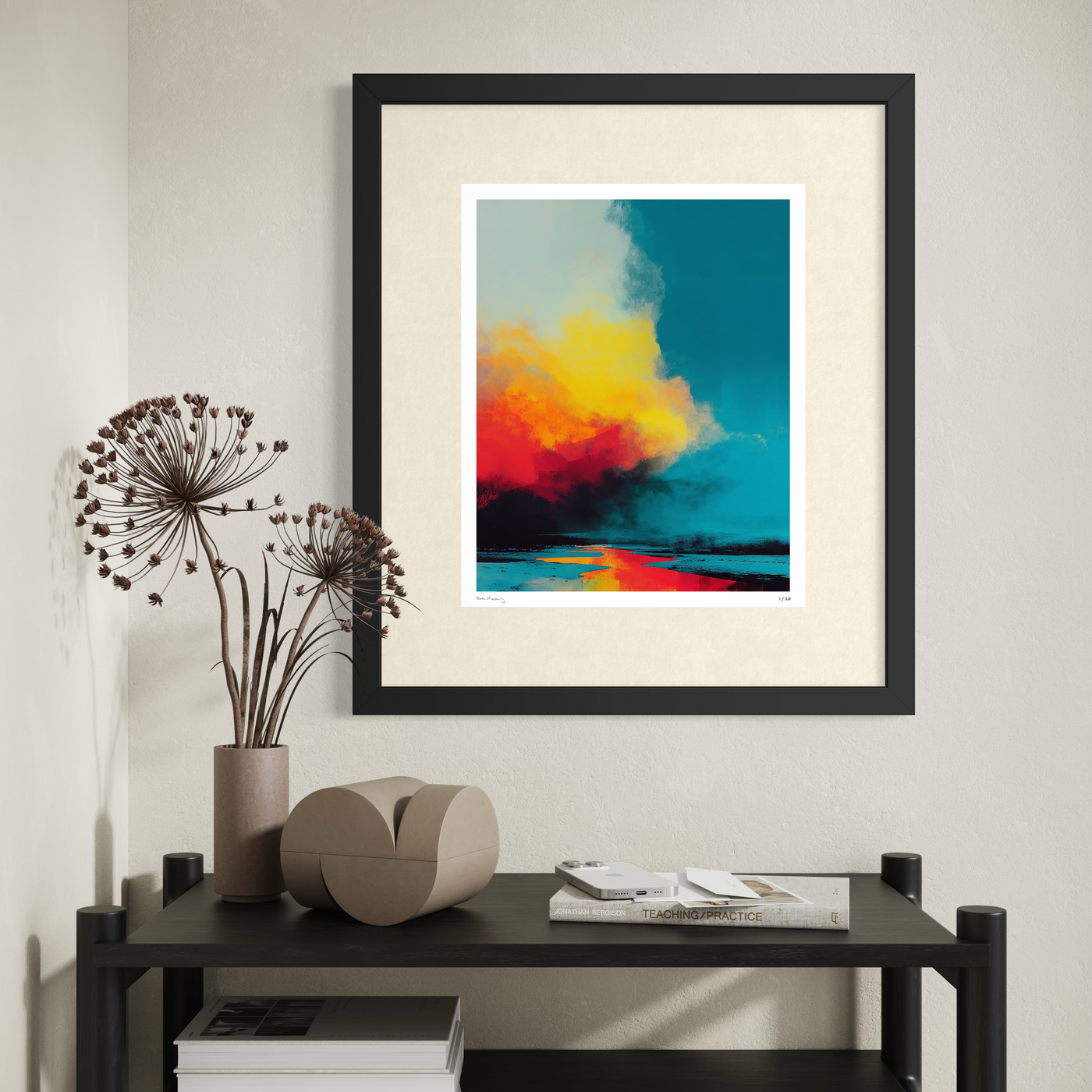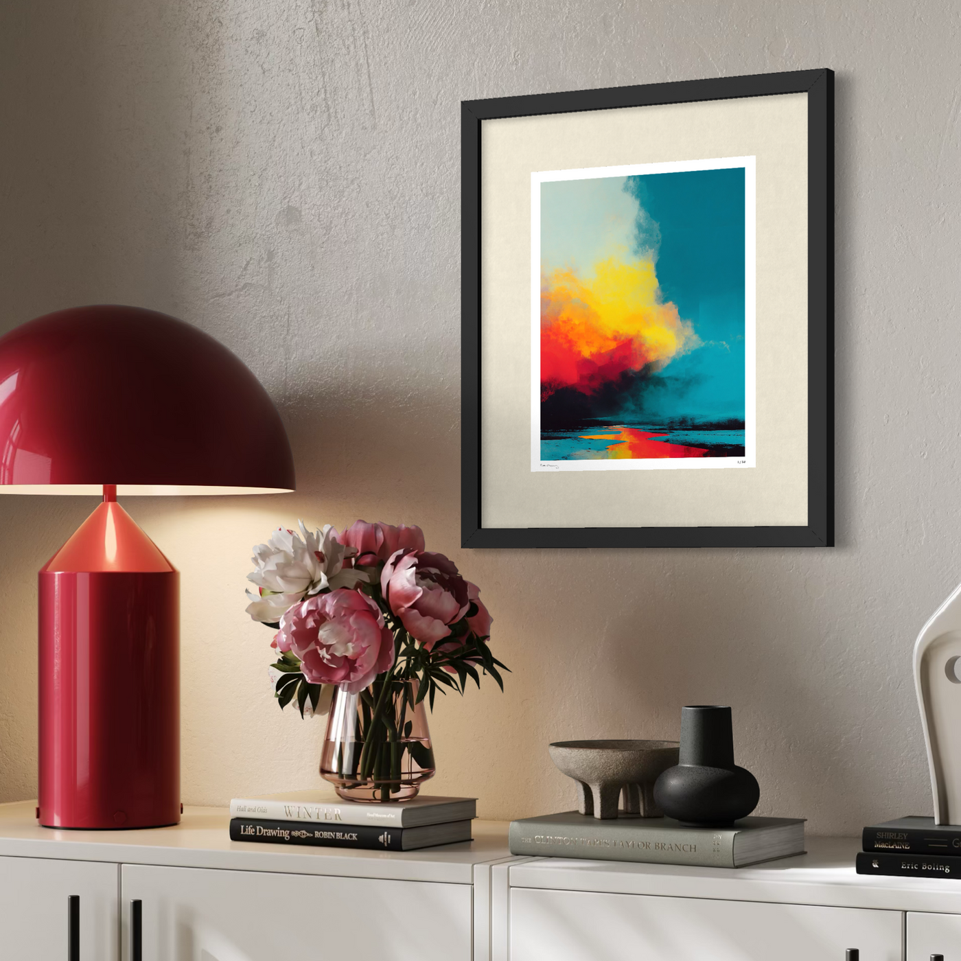 A luminous horizon of molten colour reflected in a still winter lake - striking, serene and elemental, it brings a sense of drama to any interior.